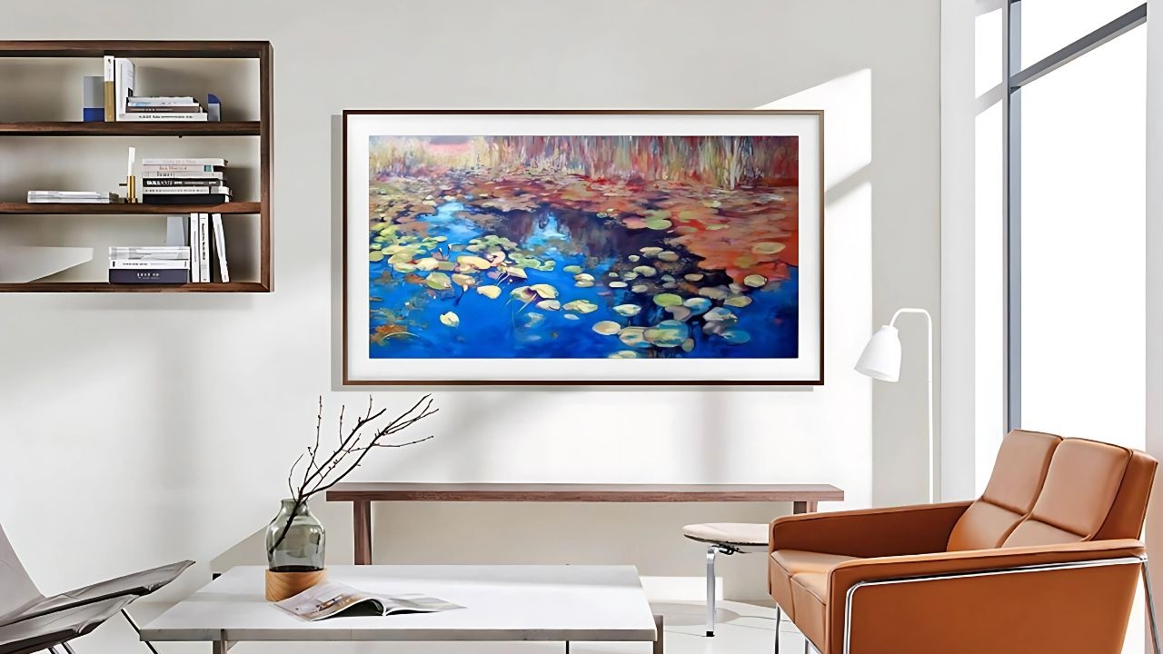 The entire idea behind The Frame is simple. When the TV is off, it turns into a piece of artwork instead of a black rectangle. Samsung uses an ambient light sensor to automatically adjust brightness and color temperature so that the screen matches the lighting in your room. In theory, it should look like a framed print on your wall, not a glowing display.